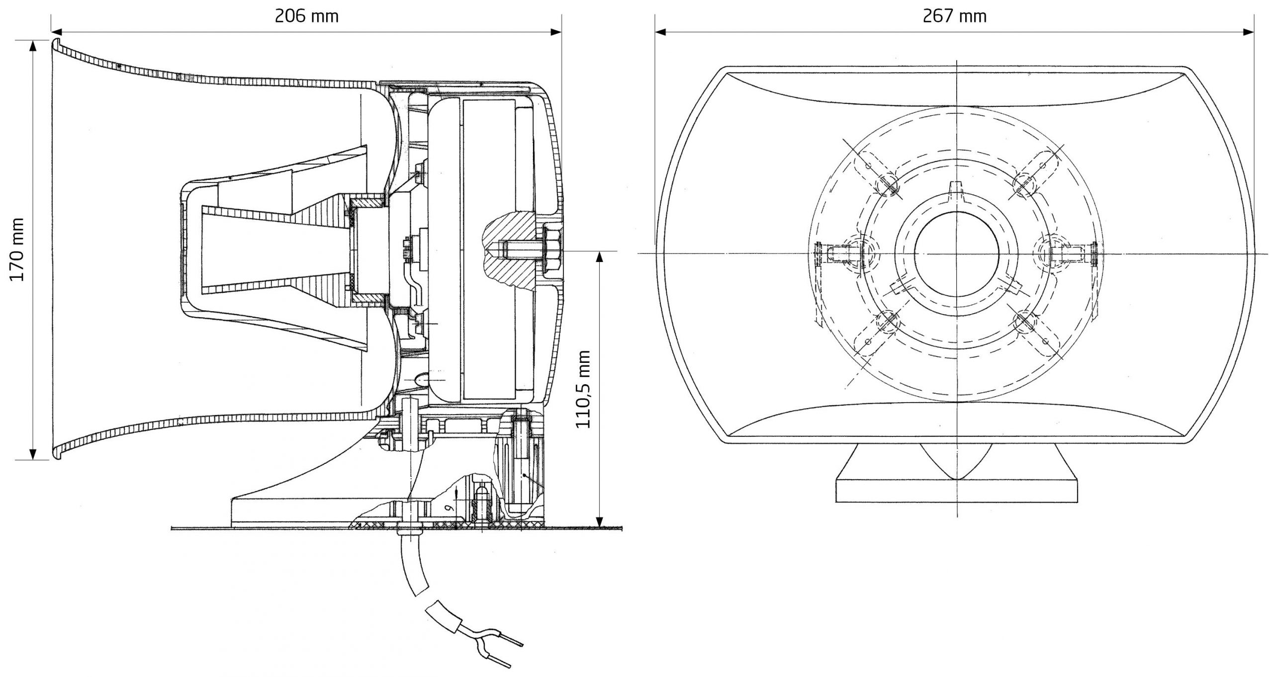 The loudspeakers LAD 335 is suitable for mounting on large vehicles. The large funnels and extra strong pressure chamber systems ensure a high level of efficiency, both for clear and penetrating special signals and for voice announcements.