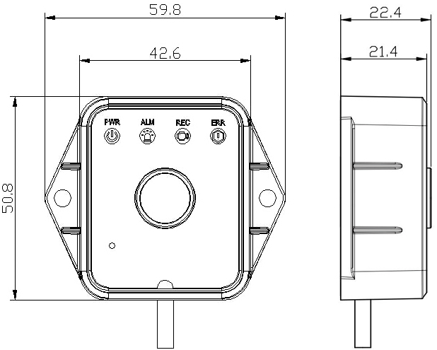 The LED’s indicate power, configurable sensor alarms, recording status, and error alarms.