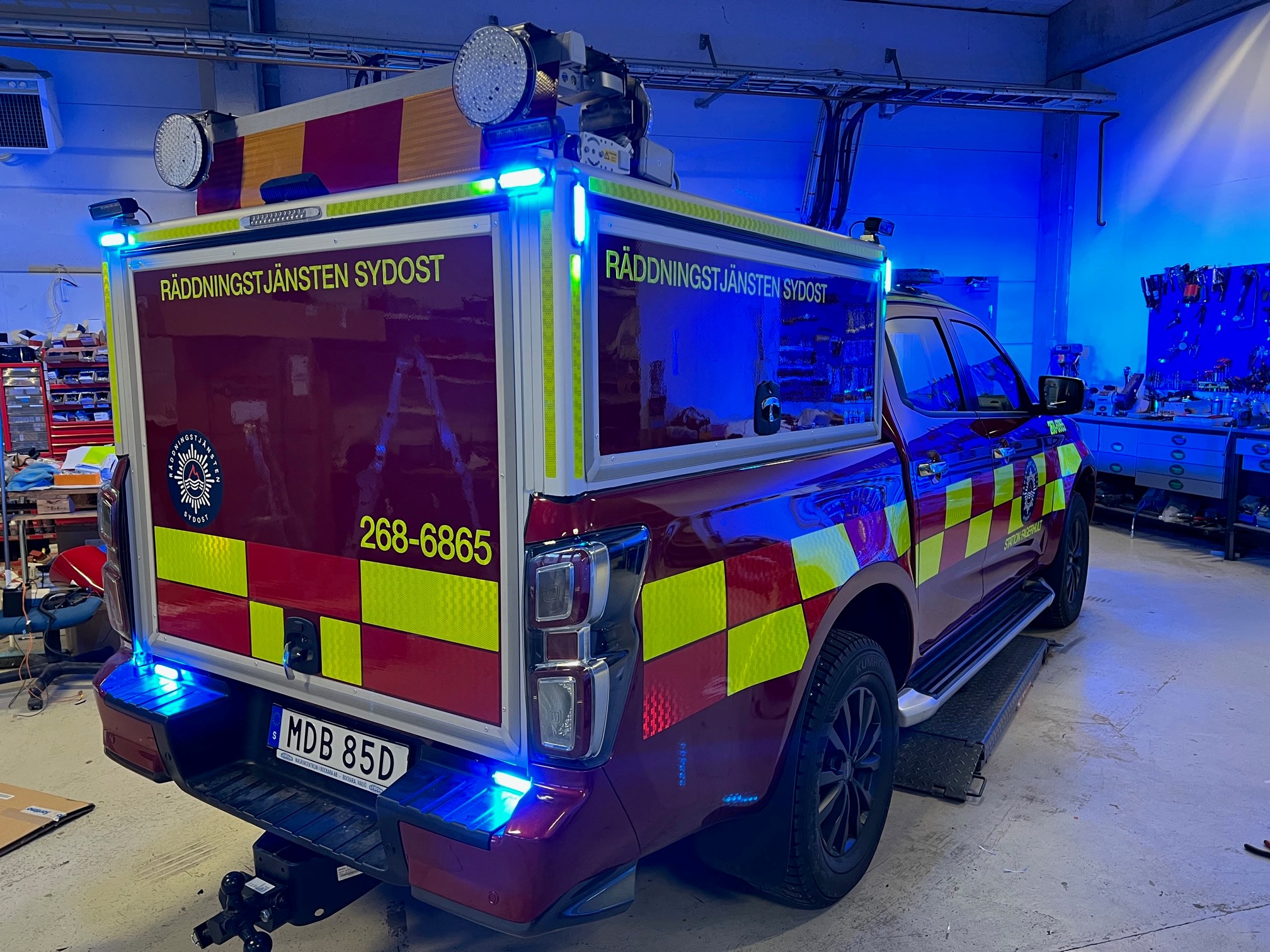 Insatsledarbil byggd på Izuzu Pickup av MobilCenter Oskarshamn till Räddningstjänsten Sydost (Station Fagerhult). Standby-produkter på bilen är W3 Ljusramp, CS25 Styrsystem med Mini-Din panel samt L52 2C varningsljus och L54 backljus.