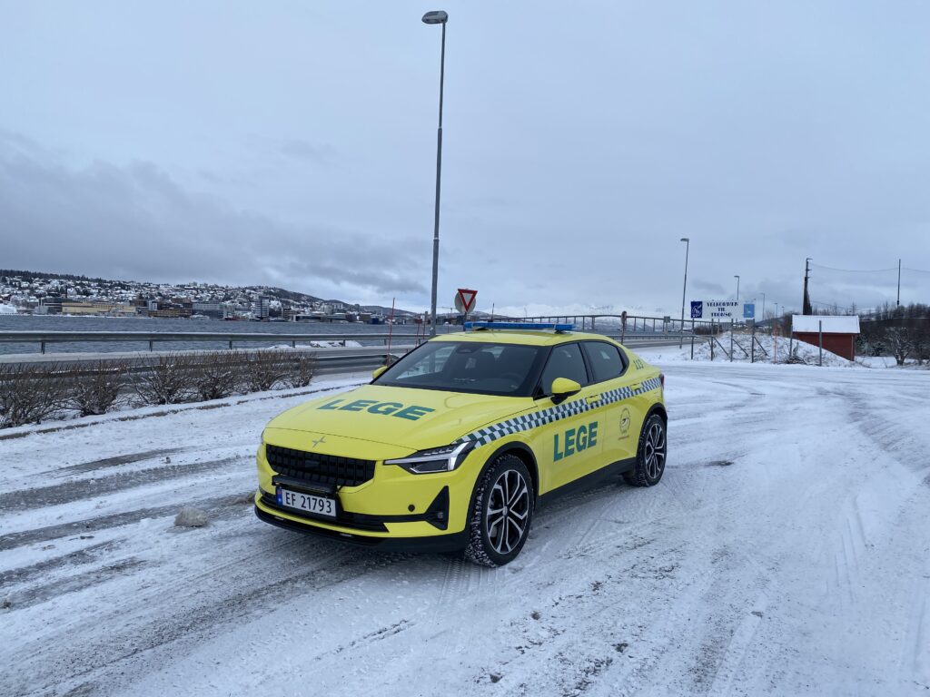 Läkarbil byggd på Polestar 2 av Handicare Auto till Universitetssykehuset Nord-Norge. Standby-produkter på bilen är W3 Ljusramp, CS25 Styrsystem med P1 Panel samt L52 och L54 Varningsljus.