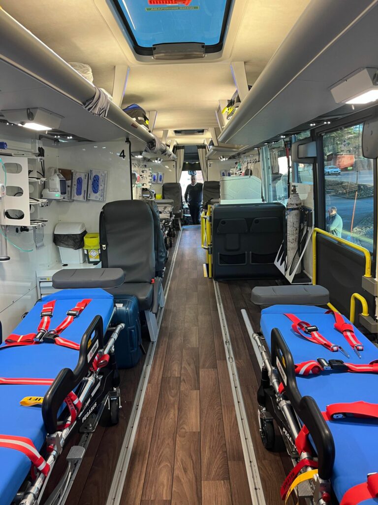 Fem stycken ambulansbussar byggda på Volvo och MAN (bilderna) av Volvo Bussar i Säffle skänks av Norska regeringen till hjälparbetet i Ukraina. Standby-produkter på bussarna är CS25 Styrsystem och L56 Varningsljus. Mer info finns här.
